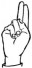 На ћирилици написано МИНА АЦАМОВИЋ састоји се из 12 слова [?]. Исписано ћириличном једноручном азбуком за глувонеме:
